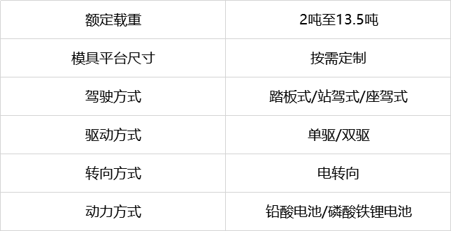 定制型模具搬运及更换车,载重2吨至13.5吨,满足各类模具的搬运及快速更换。