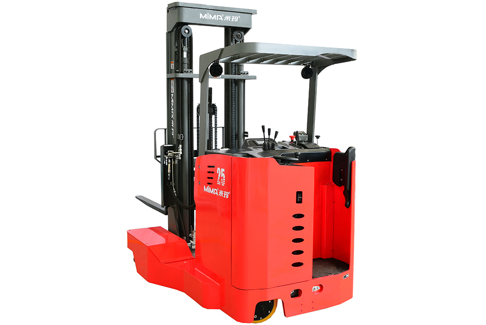 MQ系列叉车是一款适合窄巷道堆垛作业、长物料搬运的窄体站驾式全向叉车,起升高度3.0m~8.0m。较普通前移式叉车,它具备直行、侧行、斜行、直角转弯、原地回转等行驶模式。特别是侧向行驶功能使得车辆更适合叉取长条状的货物,如金属型材、钢筋、板材等。