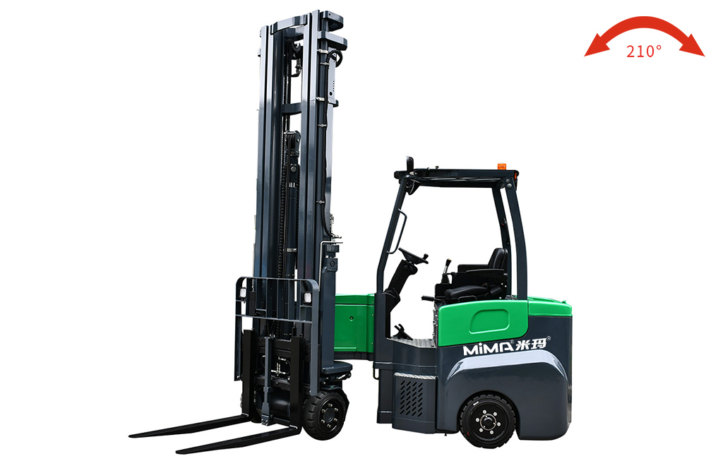 门架摆角可达210°,堆垛通道仅需1.9米,存储能力提升50%。
