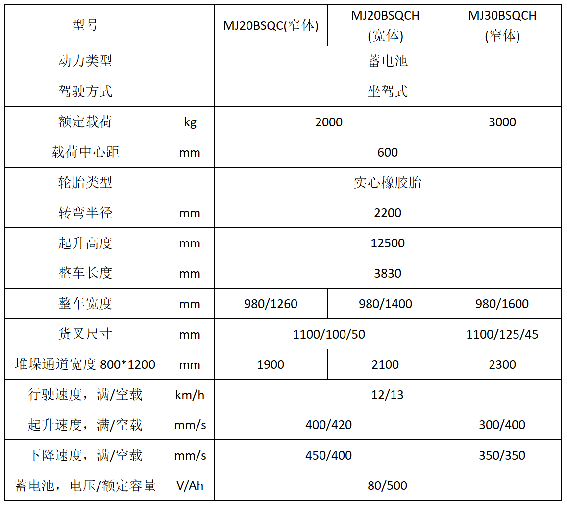 额定载重2吨,起升高度可达12.5米,起升3.3米不失载。