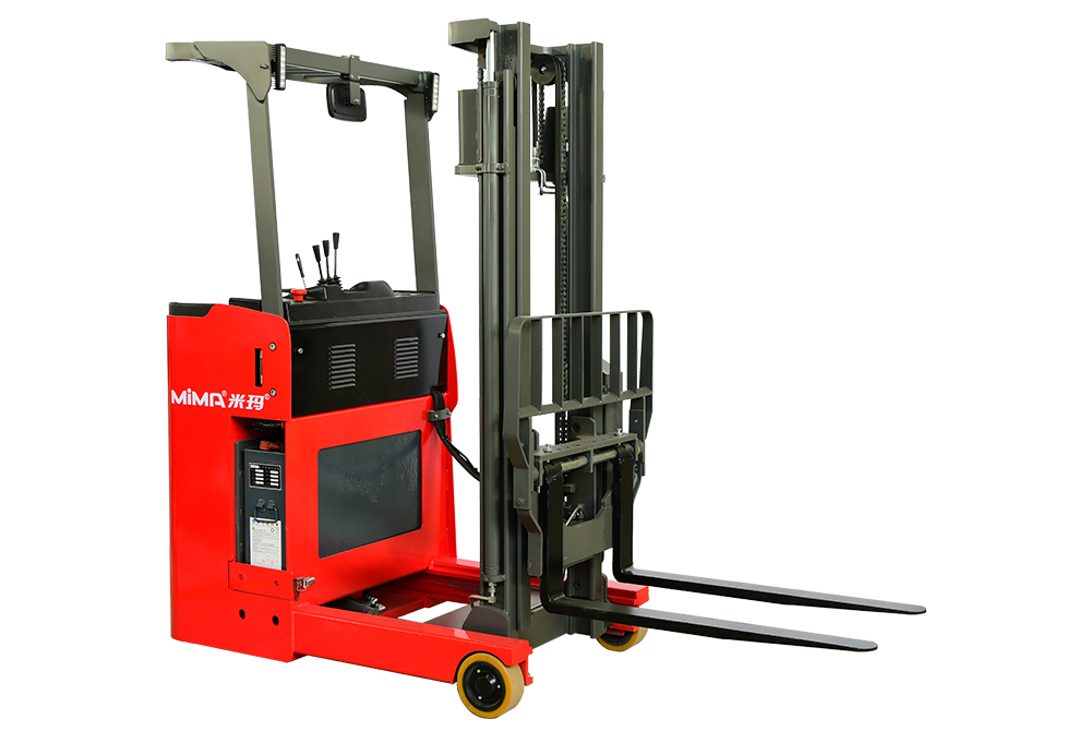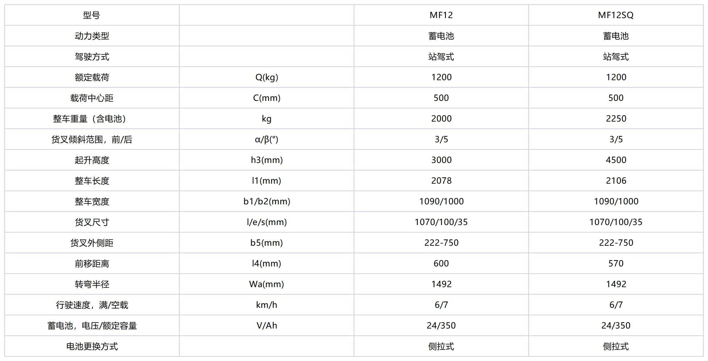 MF12是新款站驾前移式叉车,承载能力1.2吨;门架可以整体前移或缩回,拥有较小的车身及转弯半径和更高的工作效率。